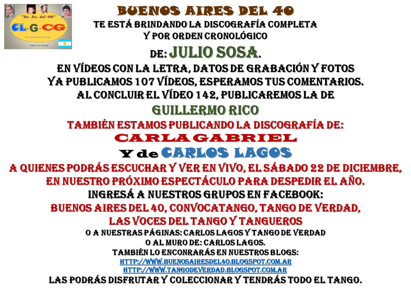 LO HACEMOS POR EL TANGO, RECORDANDO AL AMIGO JULIO SOSA Y PARA VOS, DISFRUTALO